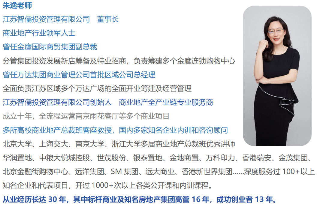 1.商业地产企业的高层管理者、运营总监、招商负责人、营销企划总监/经理、项目负责人及核心骨干